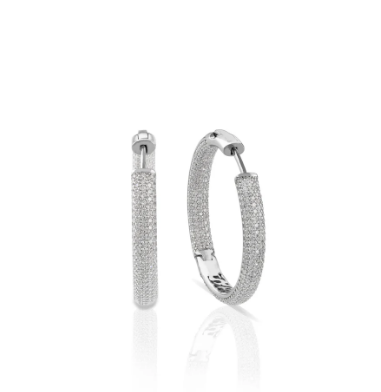 Eleganti orecchini a cerchio grande in argento 925 decorati con luminosi zirconi bianchi che esaltano la bellezza della tonalità rosata. Le dimensioni generose e la brillantezza delle pietre creano un effetto glamour perfetto per le serate eleganti.