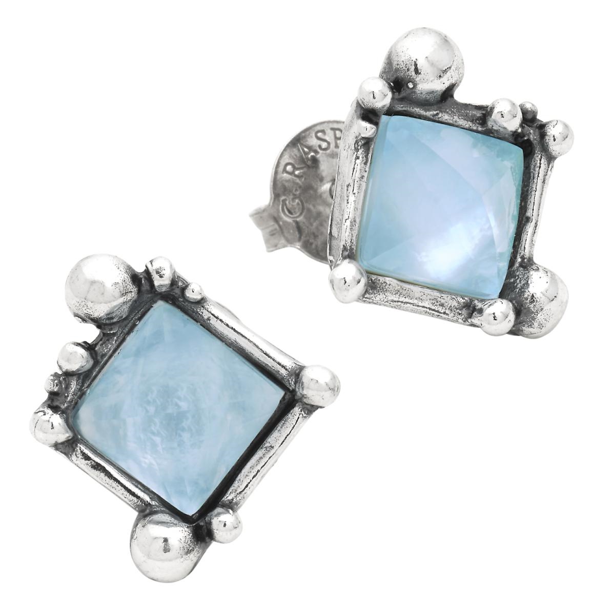 Argento 925 e madreperla azzurra doppiata con cristallo