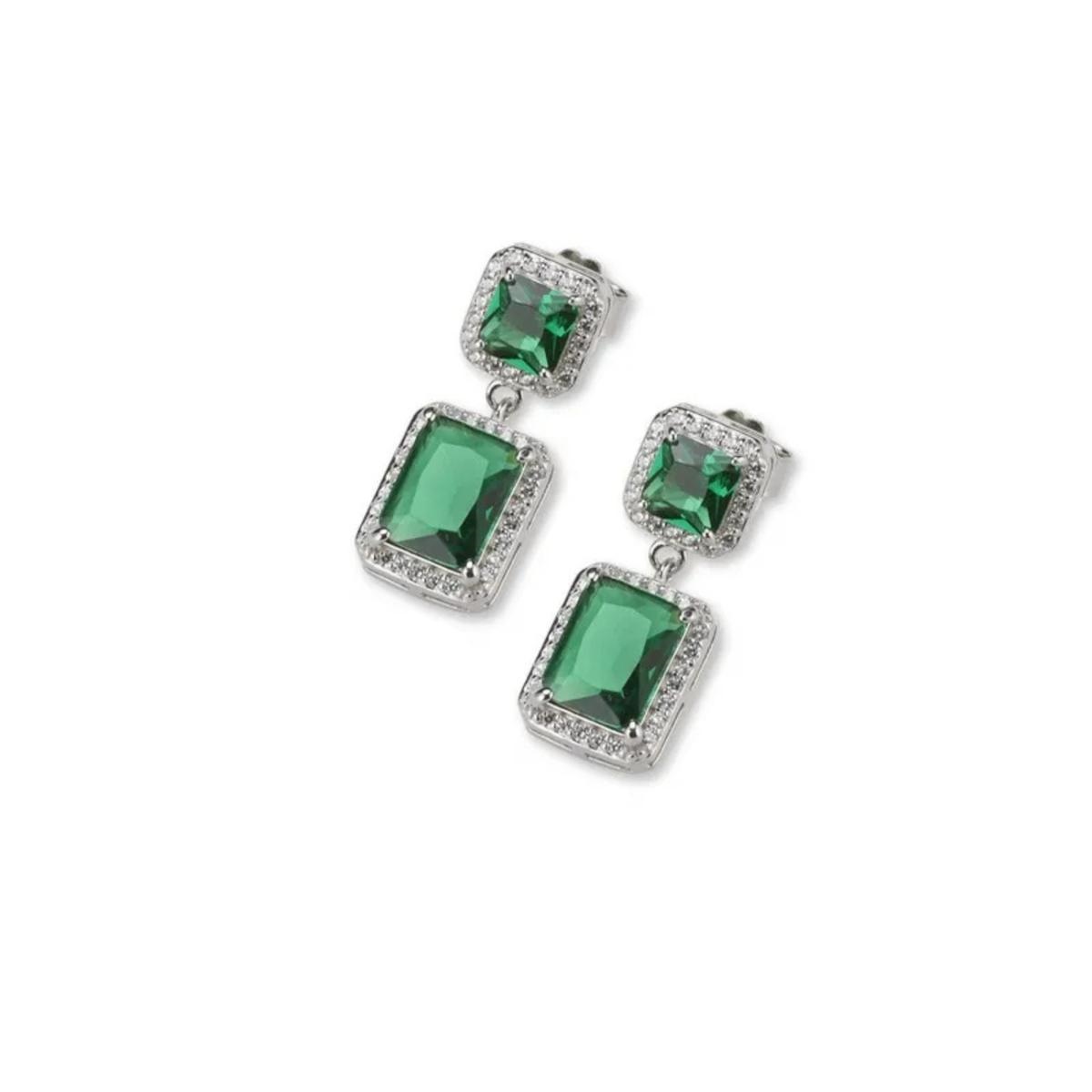 Orecchini Sovrani J8129 in argento con zirconi cubici e smeraldi. Orecchini realizzati in argento sterling 925. Chiusura a pressione. Design con zirconi cubici e smeraldo.