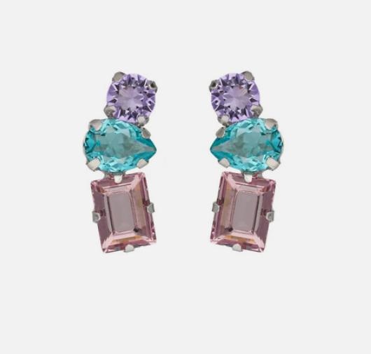 Orecchini corti in cristallo e argento sterling. Dimensioni del motivo 2x0,8 cm e colore multicolore della collezione Bay.