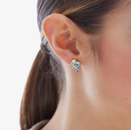 Orecchini corti in cristallo e argento sterling. Dimensioni del motivo 1,4x0,9 cm e colore blu, della collezione Lisbona.
