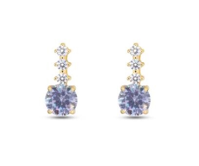 Orecchini pendenti in Argento 925 dorato con grande zircone lavanda e zirconi bianchi