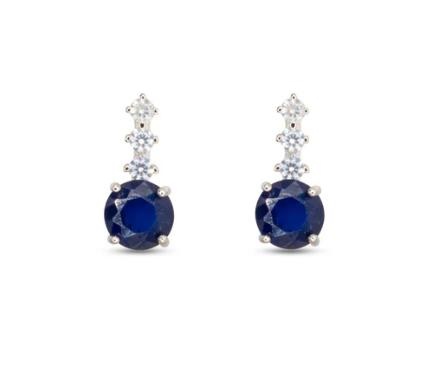 Orecchini pendenti in Argento 925 con grande zircone blu e zirconi bianchi