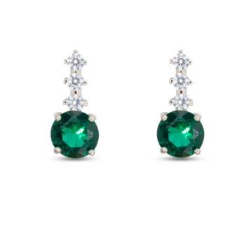 Orecchini pendenti in Argento 925 con grande zircone verde e zirconi bianchi