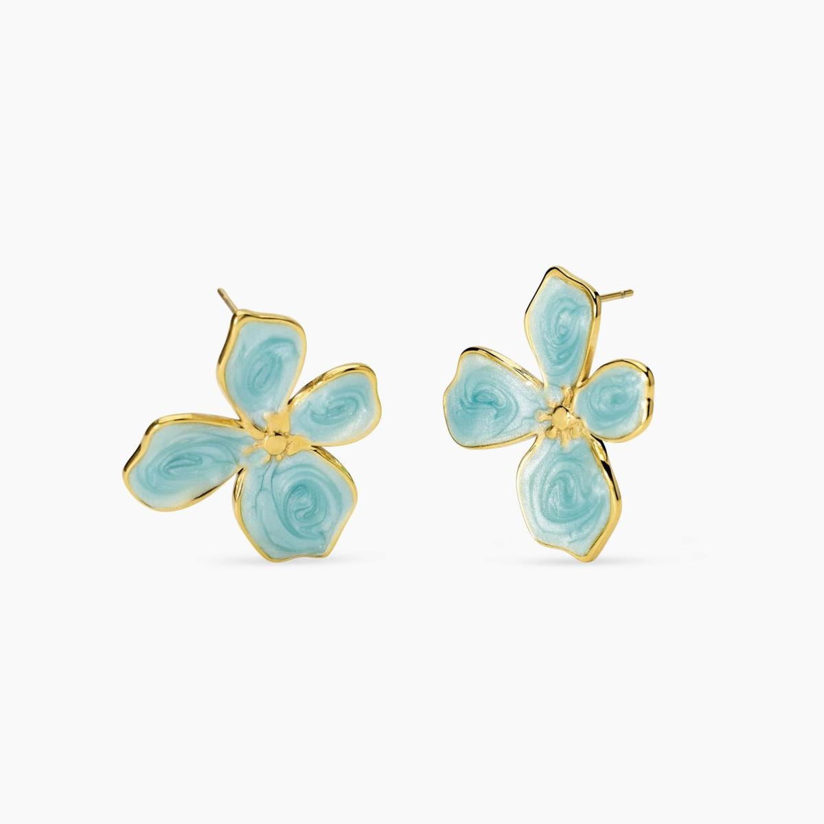 Orecchini fiore in acciaio dorato smaltati azzurro.