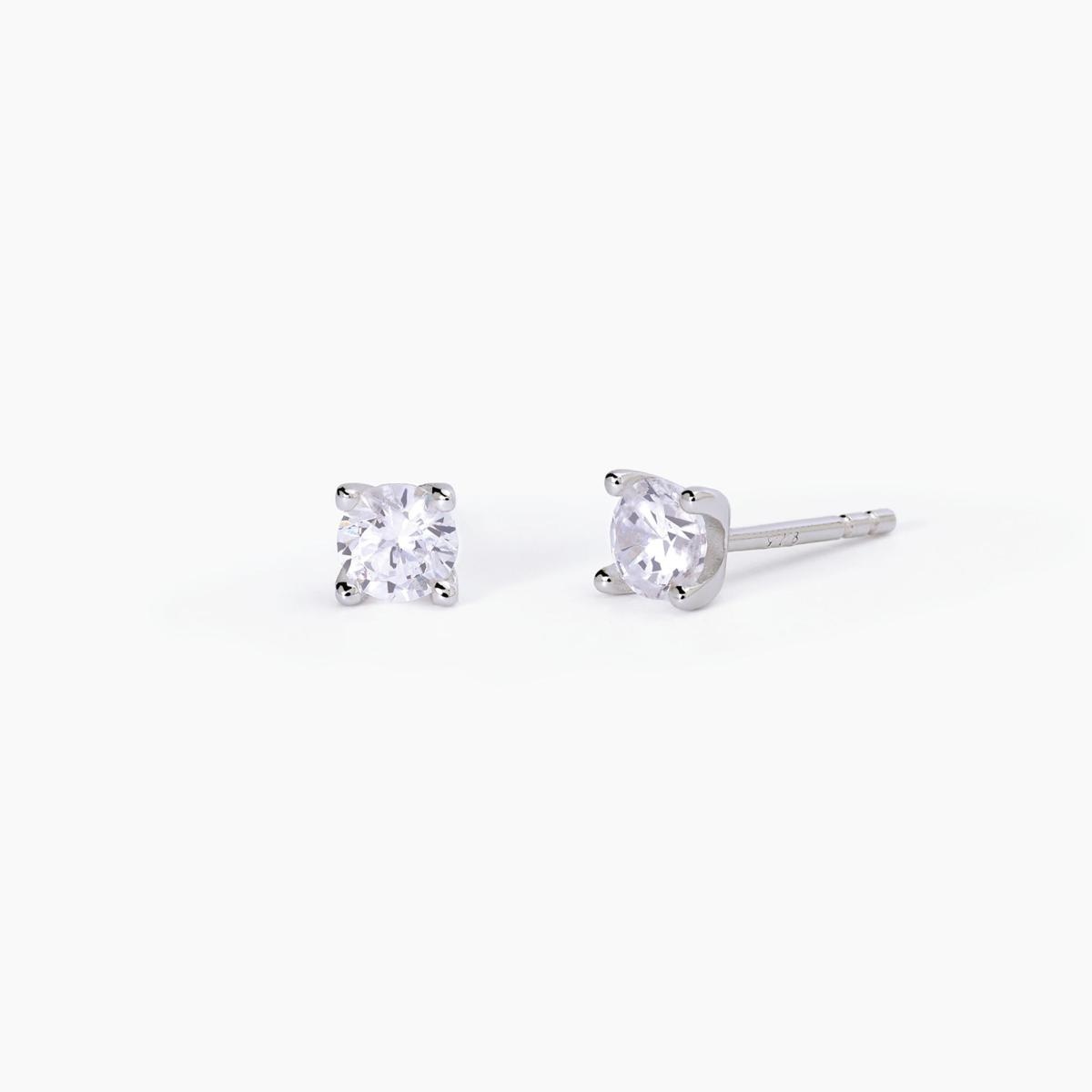 Orecchini da donna a lobo in argento rodiato con zirconi bianchi.