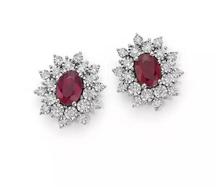Orecchini in Oro Bianco con Rubino e Diamanti