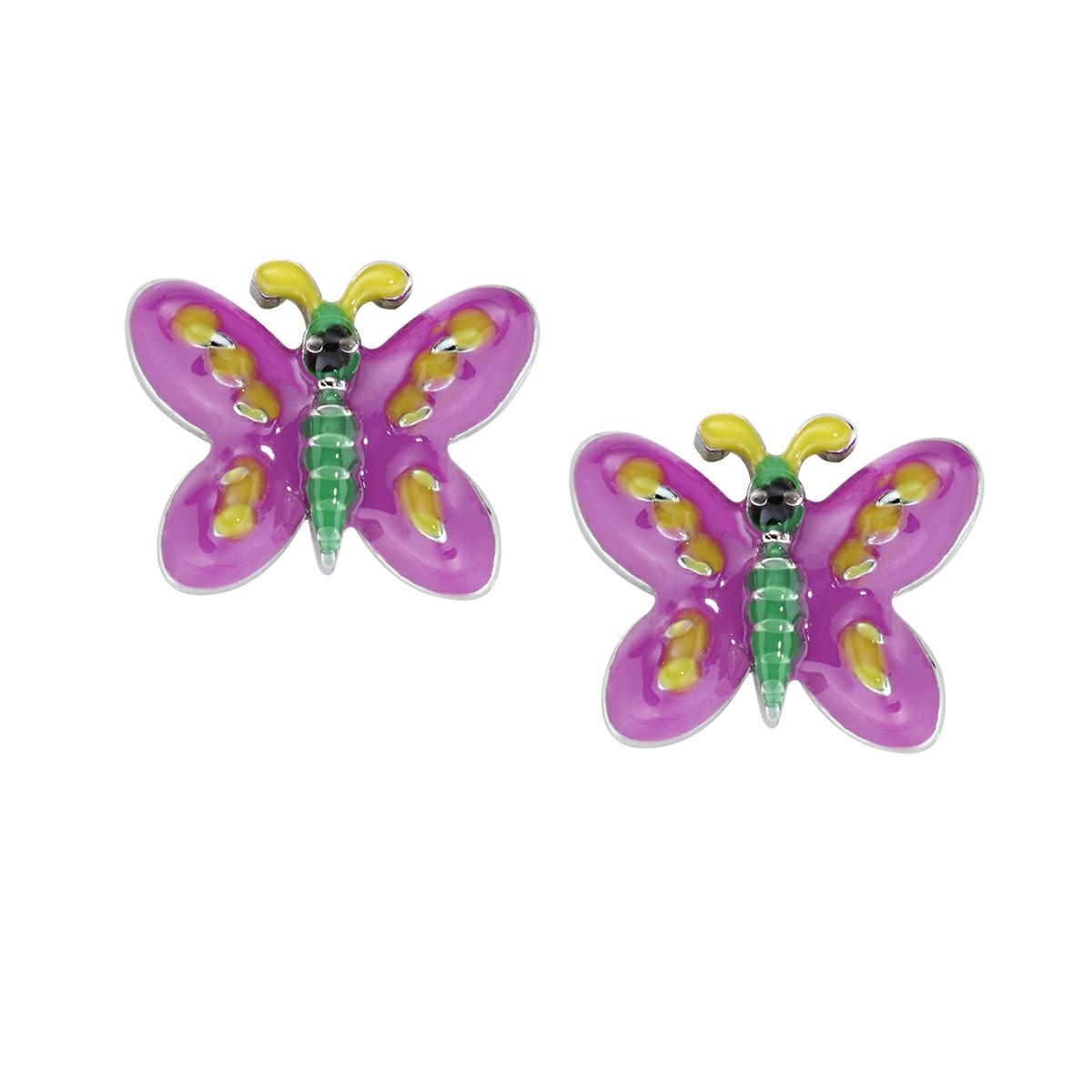Orecchini Junior Farfalla Rosa in Argento e Smalto