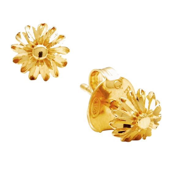 Orecchini in argento dorato piccoli e minimali in cui il decoro naturalistico Þ l'unico protagonista. La margherita d'argento in fusione, diamantata a mano petalo per petalo, dÓ vita a questi elegantissimi orecchini. Bellezza e luce assoluta da indossare. Realizzati a mano in azienda.