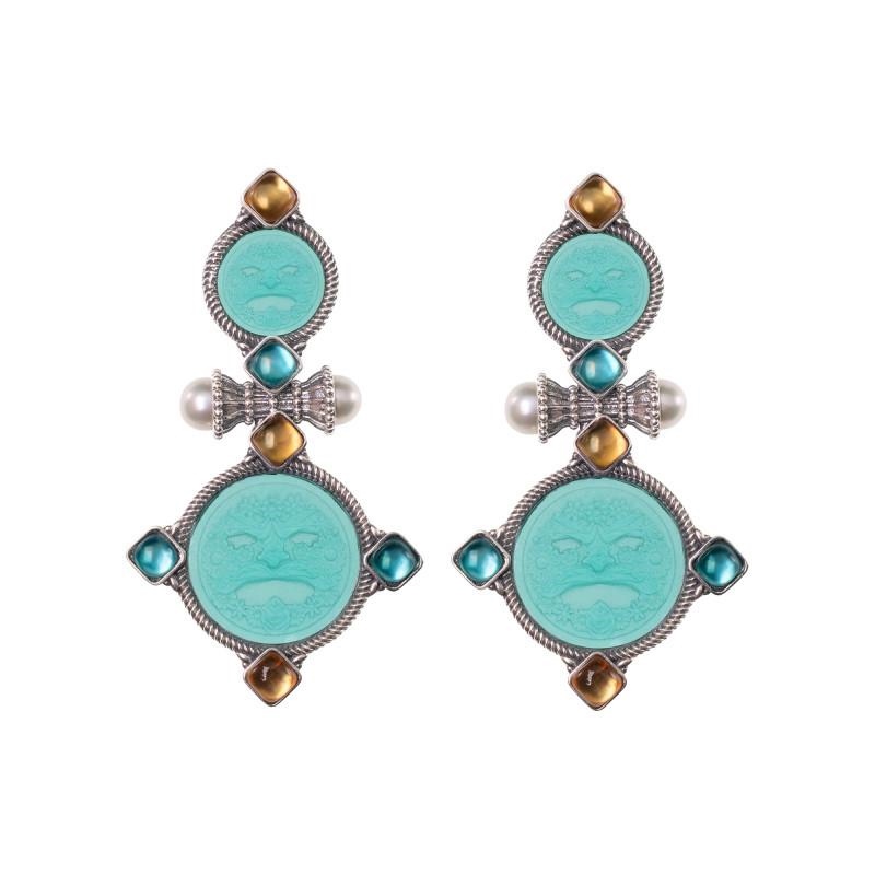La magia dell'arcobaleno si racchiude in un ciondolo in argento dalla fine lavorazione e l'elegante design. I colori vividi e accesi della zirconia sfaccettata dal taglio rotondo, rendono omaggio alla dea Iride, attraverso raffinate nuance e simboli eterni della Magna Grecia come le maschere, figure capaci di regalare buona sorte e allontanare gli influssi negativi.