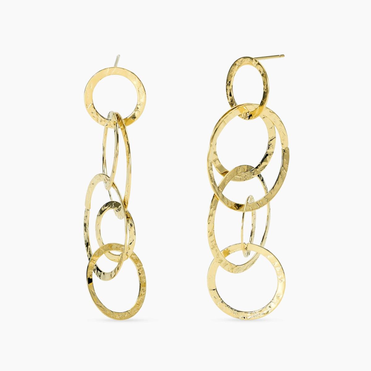 Orecchini pendenti con maglie rotonde in acciaio dorato martellato.