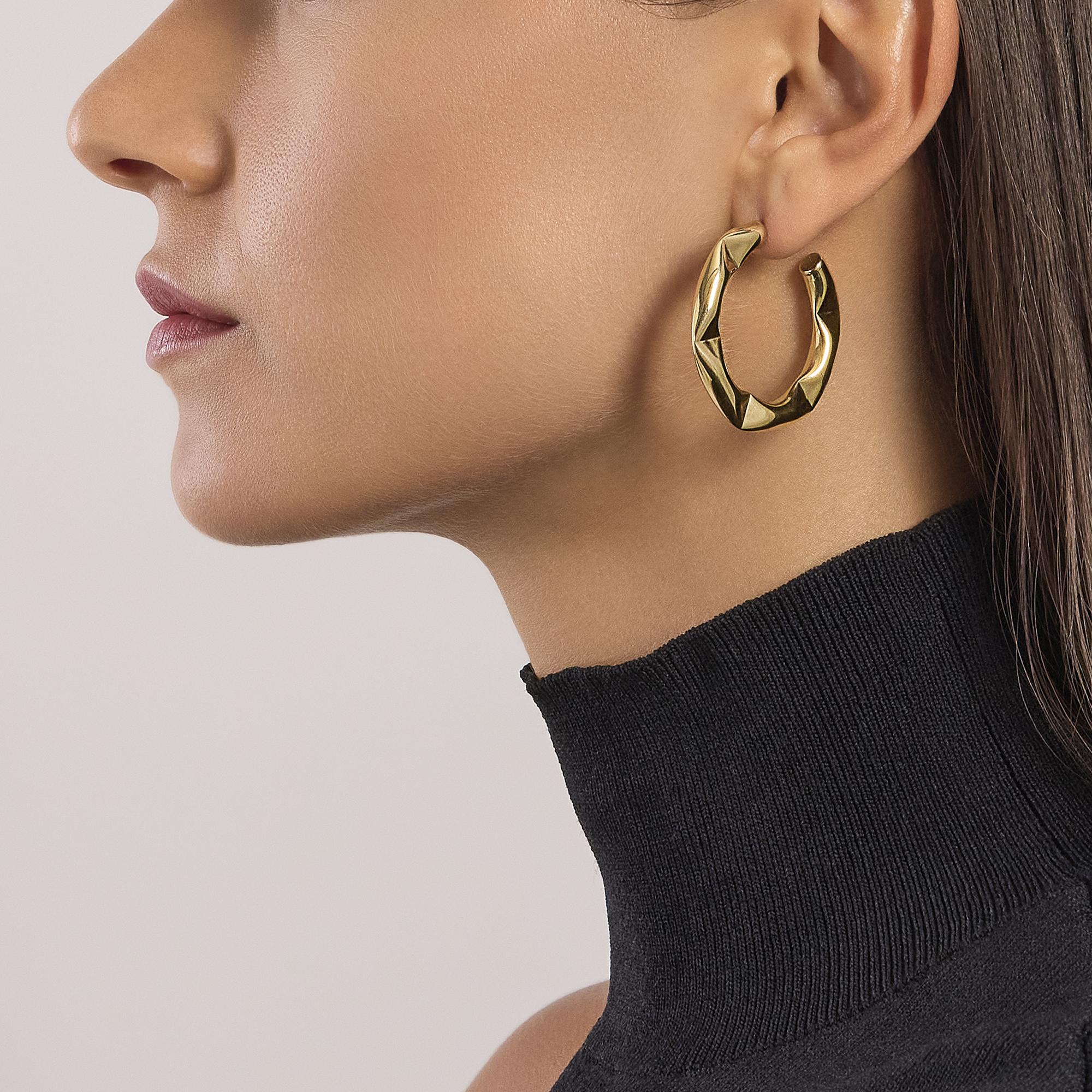 Orecchini poligonali in acciaio dorato.