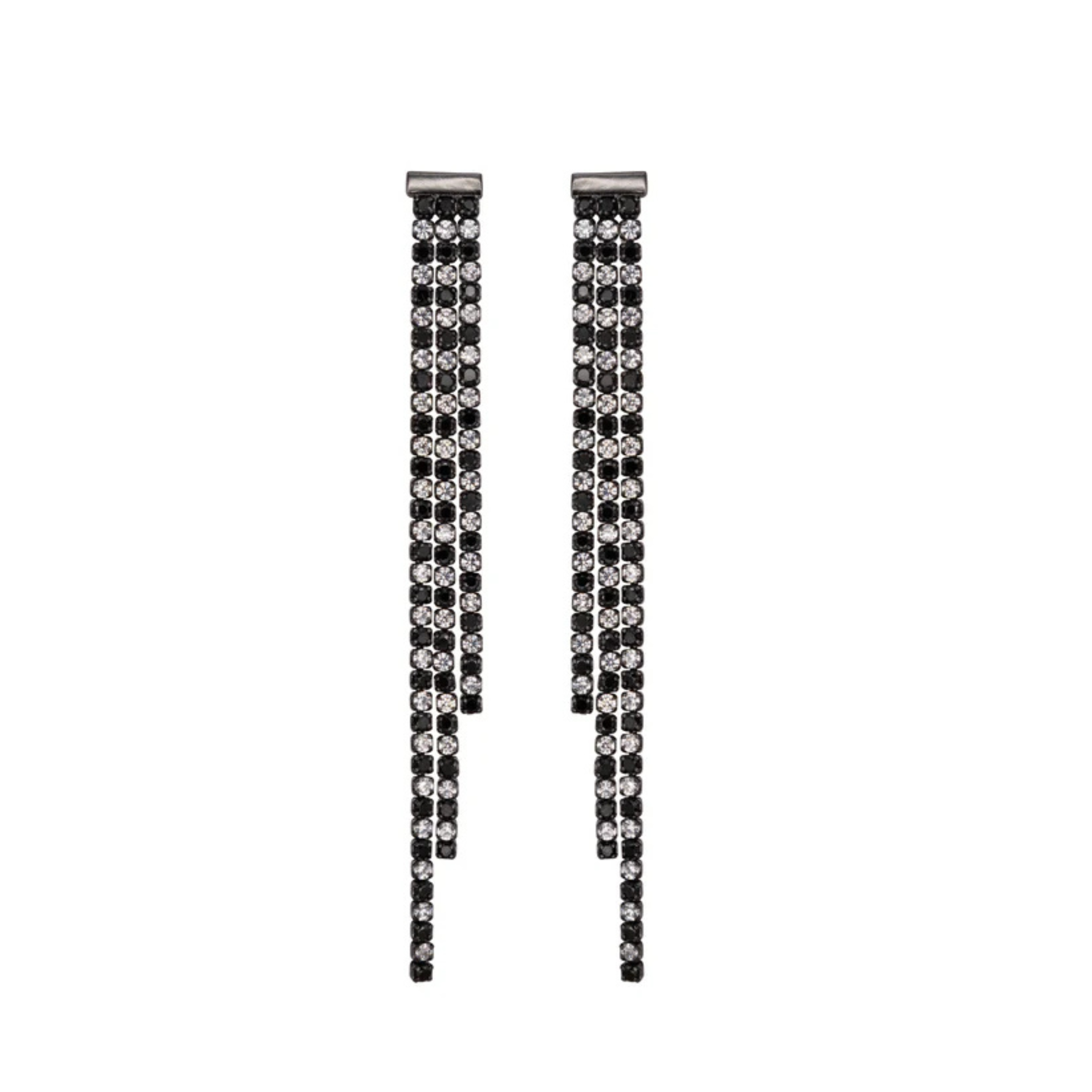 Orecchini pendenti Tennis tre fili in Argento 925 galvanica nera con zirconi bianchi e neri