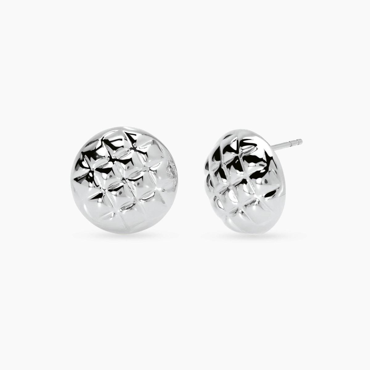 Orecchini tondi in acciaio matelassé.