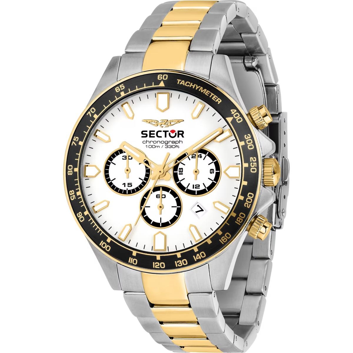 OROLOGIO SECTOR 230 - R3273661053 - Genere : Uomo, Materiale e finitura cassa: Acciaio, Misura cassa: 43.00mm, Spessore cassa: 12.00mm, Finitura cassa: Lucido, Colore cassa: Silver, Gold, Vetro: Vetro minerale, Materiale cinturino: Acciaio, Colore cinturino: Oro, Silver, Chiusura: Fibbia diver con blocco sicurezza, Movimento: Quarzo, Water resistant: 10 atm, Garanzia: Ufficiale 2 anni Sector, Confezione: Originale Sector