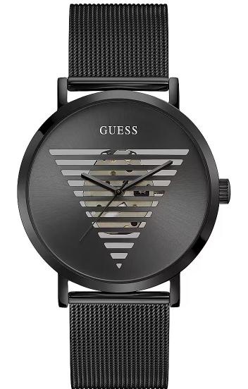 Orologio solo tempo da uomo di Guess della collezione idol.Orologio con resistenza all'acqua fino a 30m. Il quadrante Þ nero con finitura Sunray. La cassa Þ di 44mm di colore nero con finitura lucidarealizzata in acciaio inossidabile. Il cinturino Þ di colore Nero con finitura Lucida e realizzato in Acciaio inossidabile. La chiusura Þ Auto regolabile. Movimento: quarzo. Display: Analogico. La referenza Þ GW0502G2