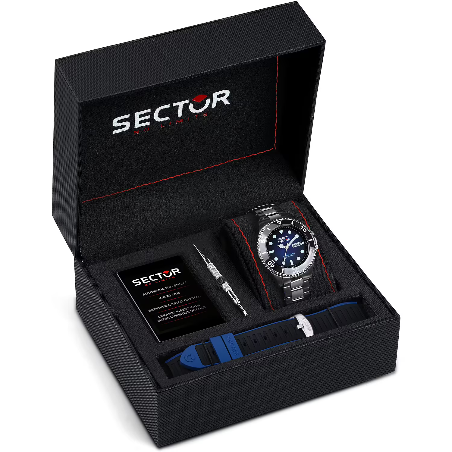 OROLOGIO SECTOR 230 - R3221161003 - Sector experience: No Limits, Genere : Uomo, Materiale e finitura cassa: Acciaio, Materiale sintetico, Misura cassa: 43mm, Spessore cassa: 13,30, Finitura cassa: Lucido, Satinato, Colore cassa: Silver, Vetro: Minerale+trattamento zaffiro, Materiale cinturino: Plastica, Colore cinturino: Nero, Chiusura: Fibbia ardiglione, Movimento: Automatico, Water resistant: 20 atm, Garanzia: Ufficiale 3 anni, Ufficiale 3 anni, Ufficiale 3 anni Sector, Confezione: Originale Sector