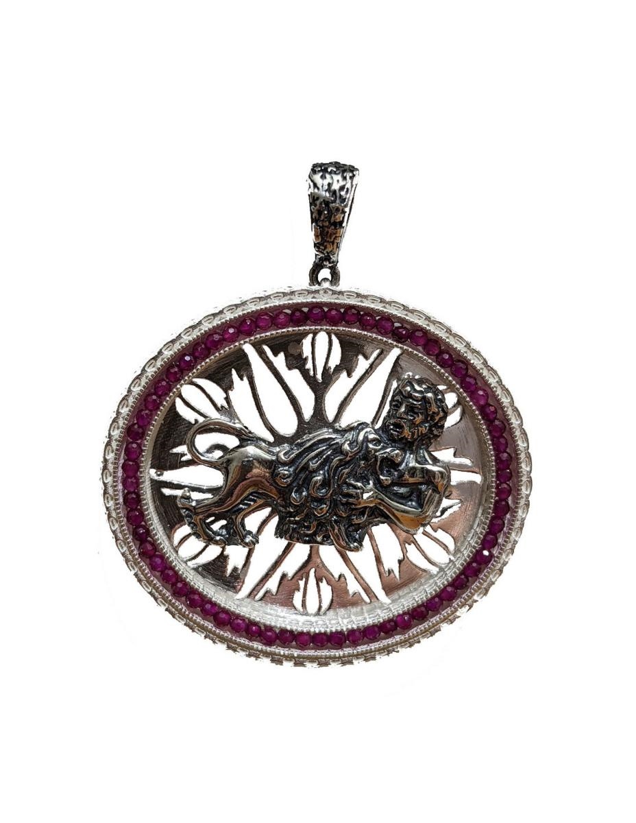 Gerardo Sacco Zodiaco pendente Leone in argento e agate rosse