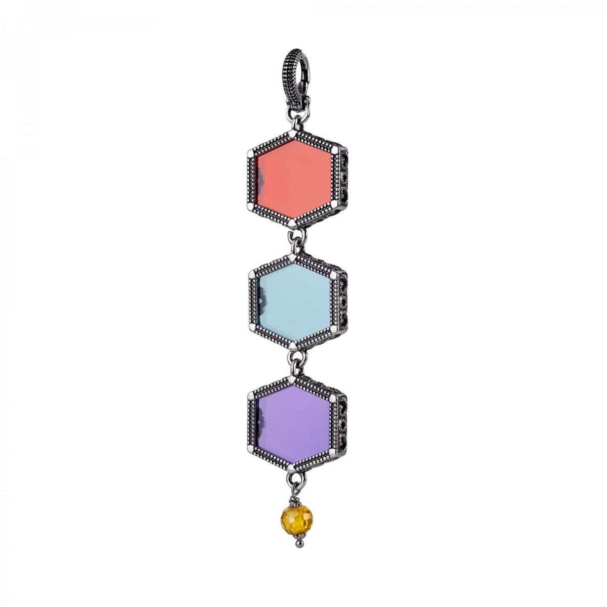 Un Ciondolo in argento , ci trasporta in atmosfere eleganti e rarefatte, dove raffinati castoni dalle linee geometriche avvolgono pietre trasparenti dalle eleganti nuance. Una pregiata creazione madein Italy, per vivere la poesia e la magia del Mediterraneo