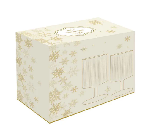 Easy Life Set 2 Bicchieri vino natalizi in vetro con bordo oro 280 ml.