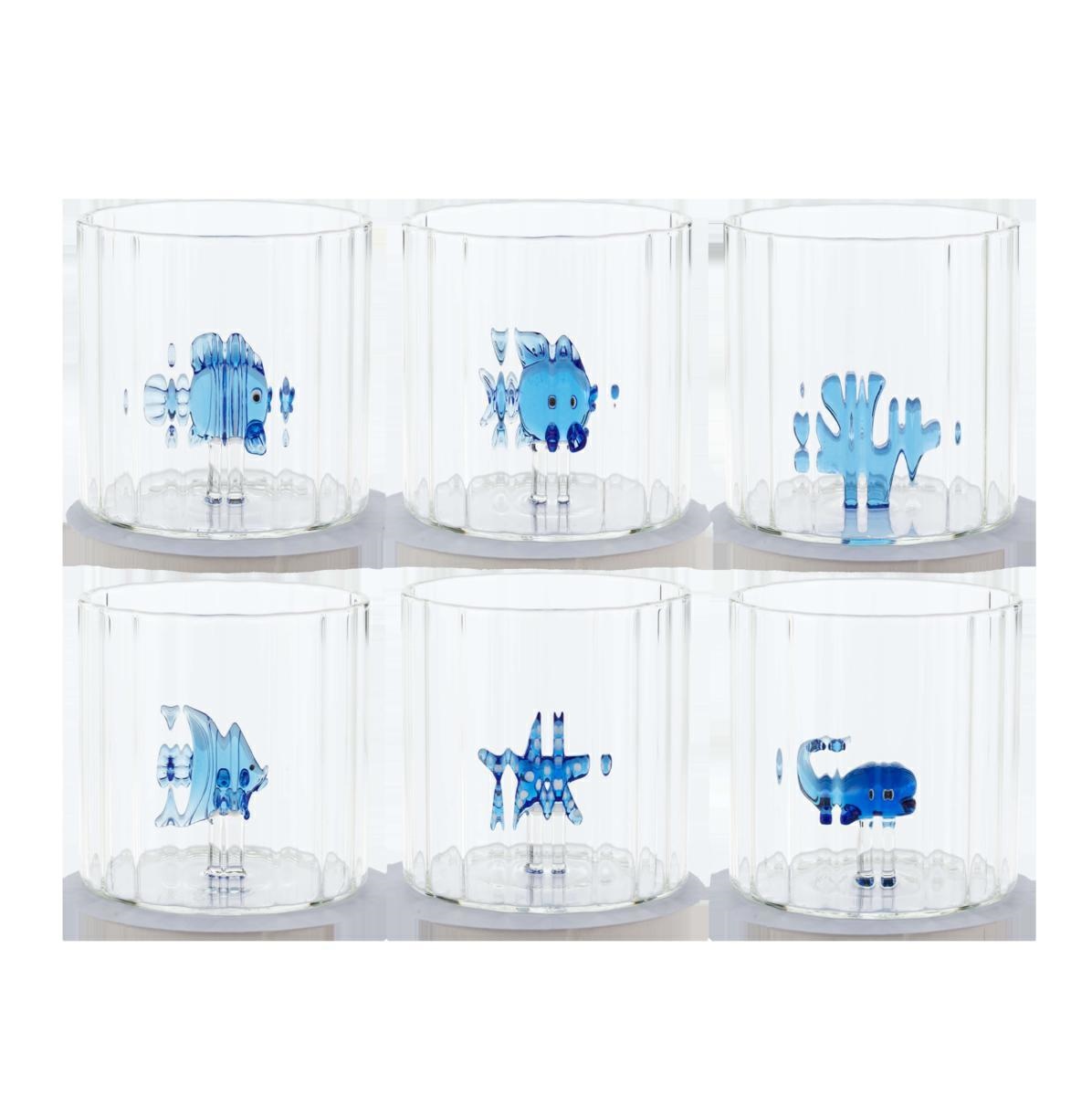 set 6 bicchieri con 6 diversi personaggi all’interno