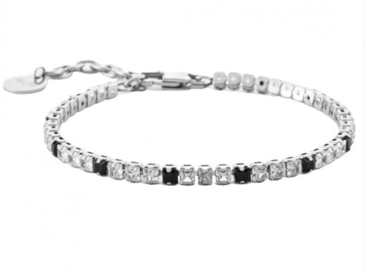 Tennis di cristalli neri e bianchi da uomo realizzato in acciaio anallergico rodiato.